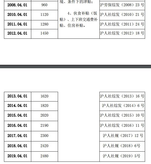 近10年上海市企业职工最低工资标准汇总 上海市人力资源社会保障网截图